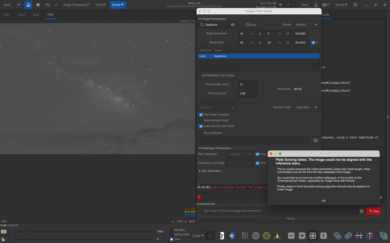 Кто-нибудь может помочь с настройками Right Ascension и Declination в Siril?