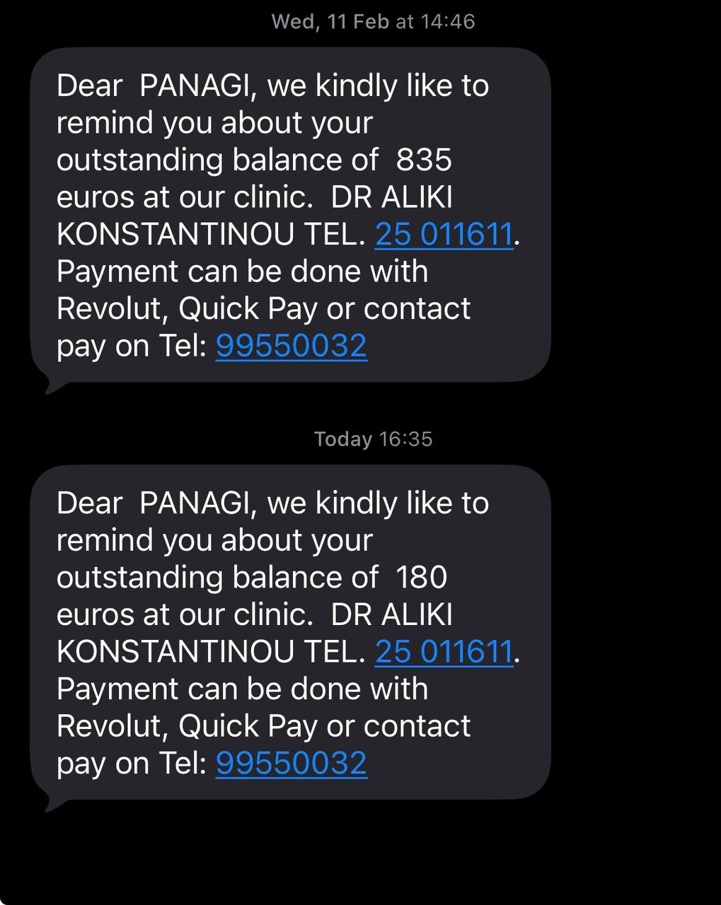 К сожалению, сейчас я переживаю очень сложный финансовый период, и впервые не могу справиться в одиночку. На сегодняшний день общая сумма долга перед доктором Aliki составляет 520€.