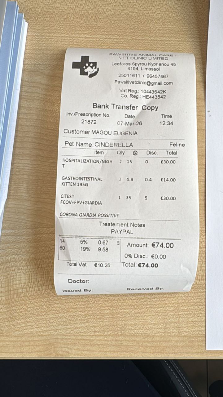 @805463401Дорогие участники, прилагаю то, что было оплачено за Золушку, но, к сожалению, всё ещё остался долг в размере €96 :( И мне очень нужно его погасить, так как есть ещё 2 кейса: 1 кот, которому пришлось удалить 99% всех зубов (очень плохи дела там были), а также в клинике уже почти 2 недели сидит котик, у которого проблемы со стулом и никак не получается его нормализовать 😭