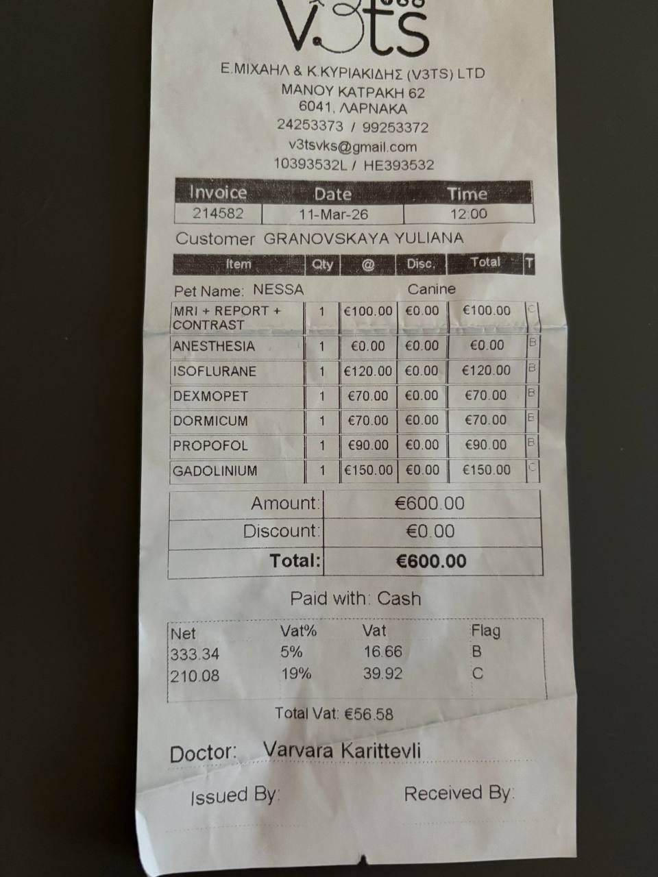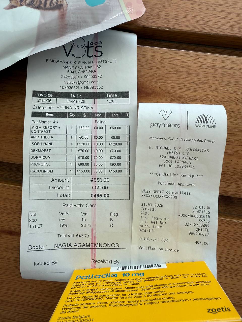 у меня на собаку 5 кг было все то же самое по лекарствам, но первая строчка (сам МРТ + контраст + репорт) была 100 евро. Почему - кто бы знал..