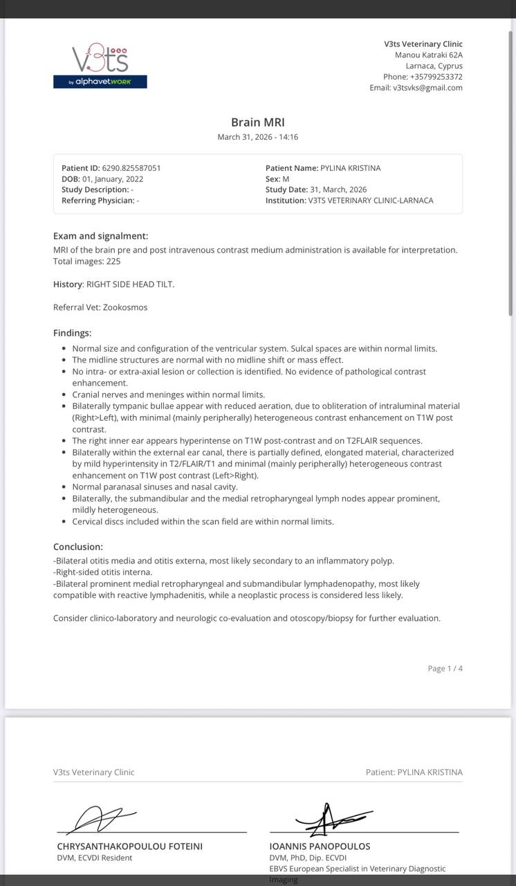 МРТ показал полип, доктор Павлос из клиники Зоокосмос готов провести операцию по его удалению за 400 евро 🤝🙏