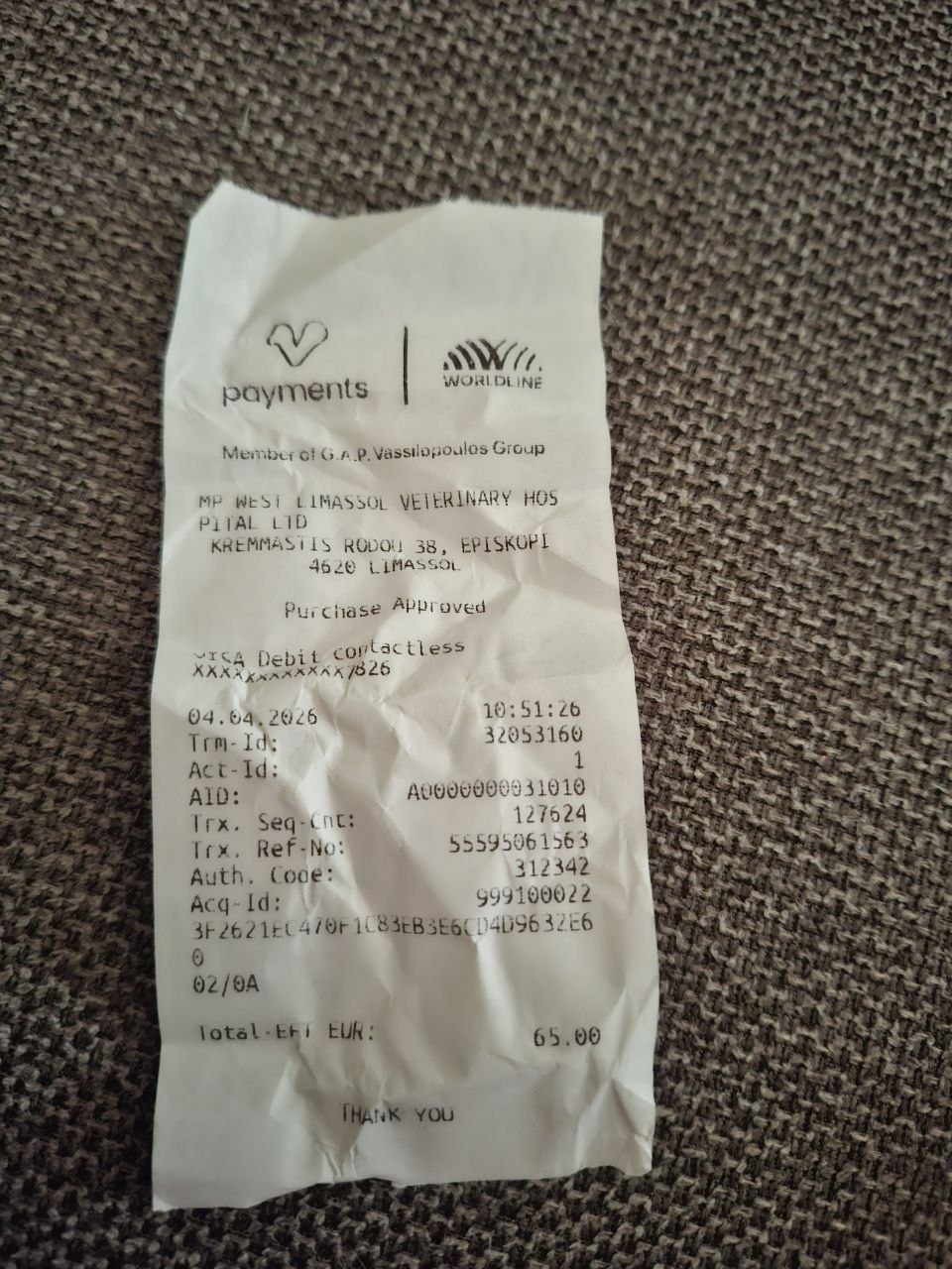 Обработала его от глистов, блох, клещей вчера сама, он на капельнице, обезвоживание ещё есть, ему немного трудно есть из-за языка (сказали скорее всего гусеницу лизнул), потом этот кусок отпадёт, но нужно время, чтобы зажило. Вкололи антибиотик, действующий 2 недели, обезболивающие и кортизон каждый день (сегодня 3ий день он в клинике). Рана на хвосте, но антибиотик поможет. Зубы в порядке. Кастрировать пока не могут, слишком слабый ещё. Почки в порядке, показатели печени были повышены, но сказали из-за того что он не ел и обезвожен, но анализ повторят. Помурлыкал вчера, поласкался мой хороший. Его зовут Thunder. Хотелось бы найти ему дом, но понимаю какая ситуация на Кипре( Счета пока нет у меня, поскольку котик ещё в клинике. Не знаю сколько дней потребуется. Вчера немного поел, но видно, что ему трудновато из-за языка(