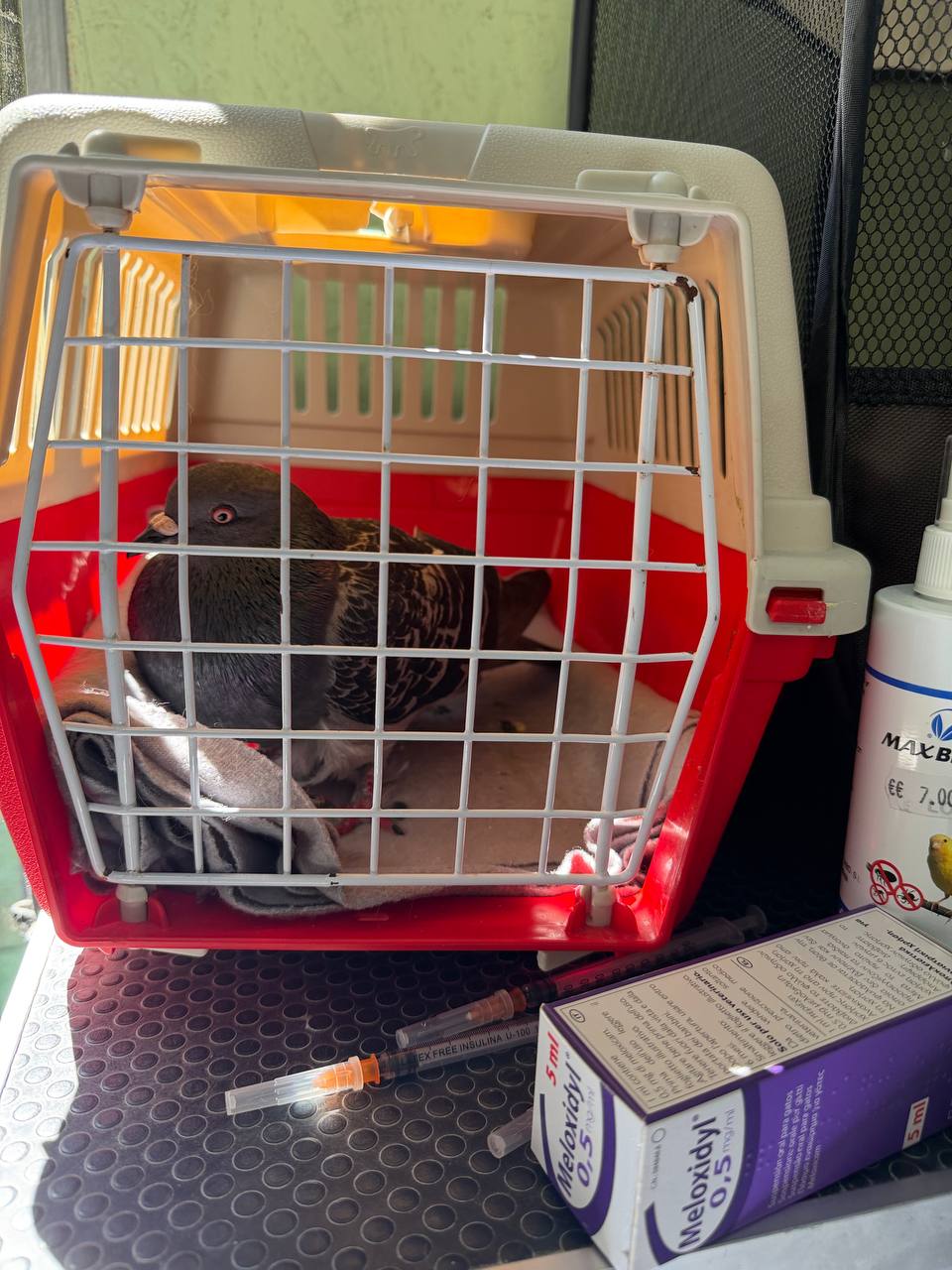 @kristinktattooВсем привет, вчера утром у меня на работе машину наехала на голубя. Он всё ещё жив и, кажется, у него нет видимых травм, но я переживаю, что может быть внутреннее кровотечение. Его глаза немного красные, но не сильно, поэтому я не уверена. Я написала Кристине из клиники Marinos, и она сказала, что может дать только обезболивающие и антибиотики. Я думала, что у меня дома есть Meloxidyl для кошек, но его не оказалось. Я поехала в клинику доктора Стелиоса поздно вечером после работы, но мне не смогли ничего дать без рецепта. Сейчас я везу голубя к своему ветеринару, чтобы она его осмотрела. Я очень рада, что он всё ещё жив 🙏🏻