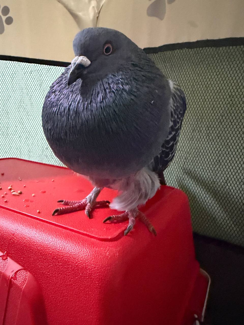 @kristinktattooОбновление 10/4/26: Голубь продолжает лечение — он ест, пьёт, чувствует себя лучше и даже уже передвигается по своему временному дому 🥹
