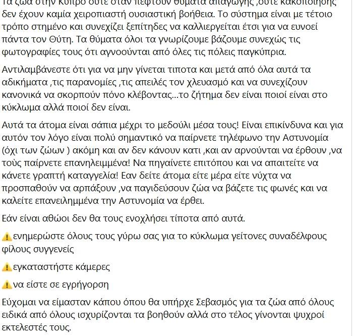 В конце поста призыв «Если вы видите людей — днём или ночью — пытающихся охватить или поймать животных. поднимайте шум и неоднократно вызывайте полицию»