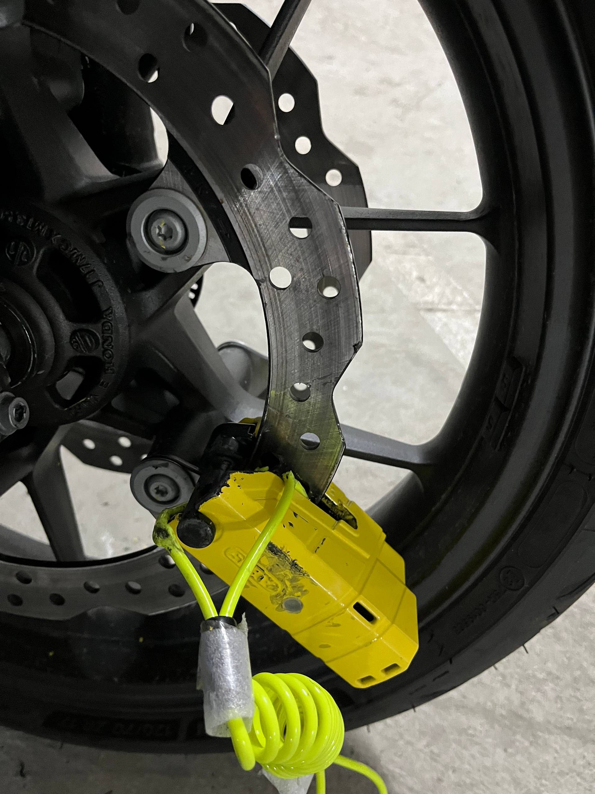 @StanislavErrПопытались угнать мот с закрытого паркинга, какой-то трубой пытались сбить замок с диска, но не смогли