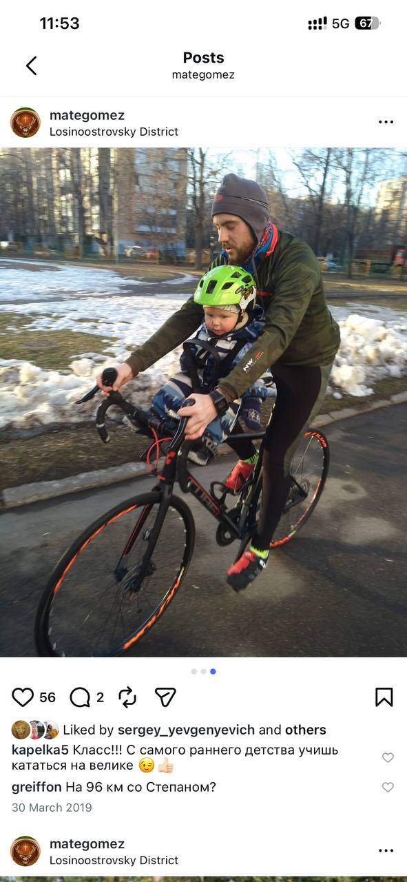 @GrKhnЯ с первым ребенком. катался как раз сзади и мне не нравился этот момент что он смотрел в жопу 🤣 но видно не судьба 🤣