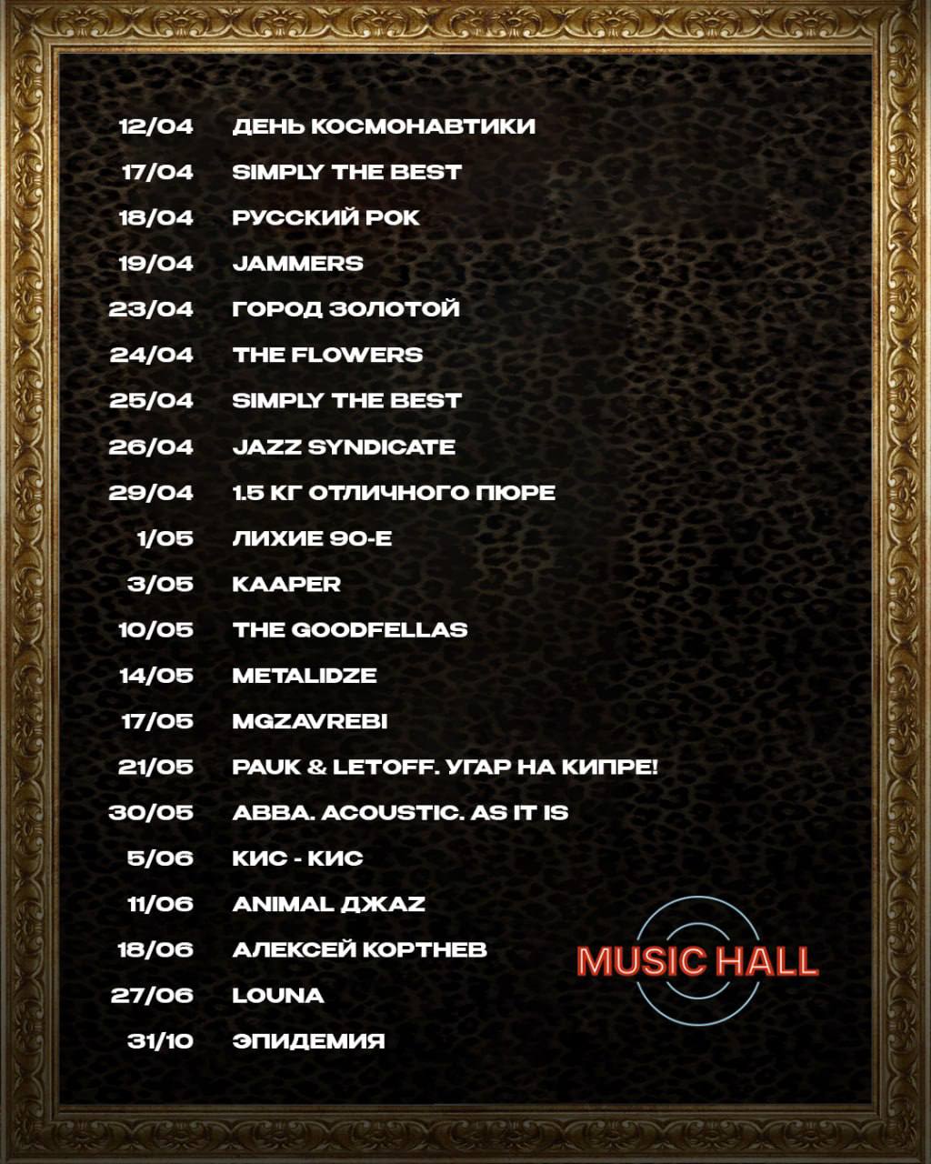 📅APRIL 15 and ALL WEDNESDAYS further , Music Hall https://t.me/livemusichall