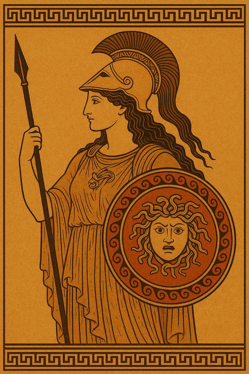 Позже щит перешёл к богине Афине. Именно υπό την αιγίδα — под щитом, под его защитой — она вела войны с другими богами.