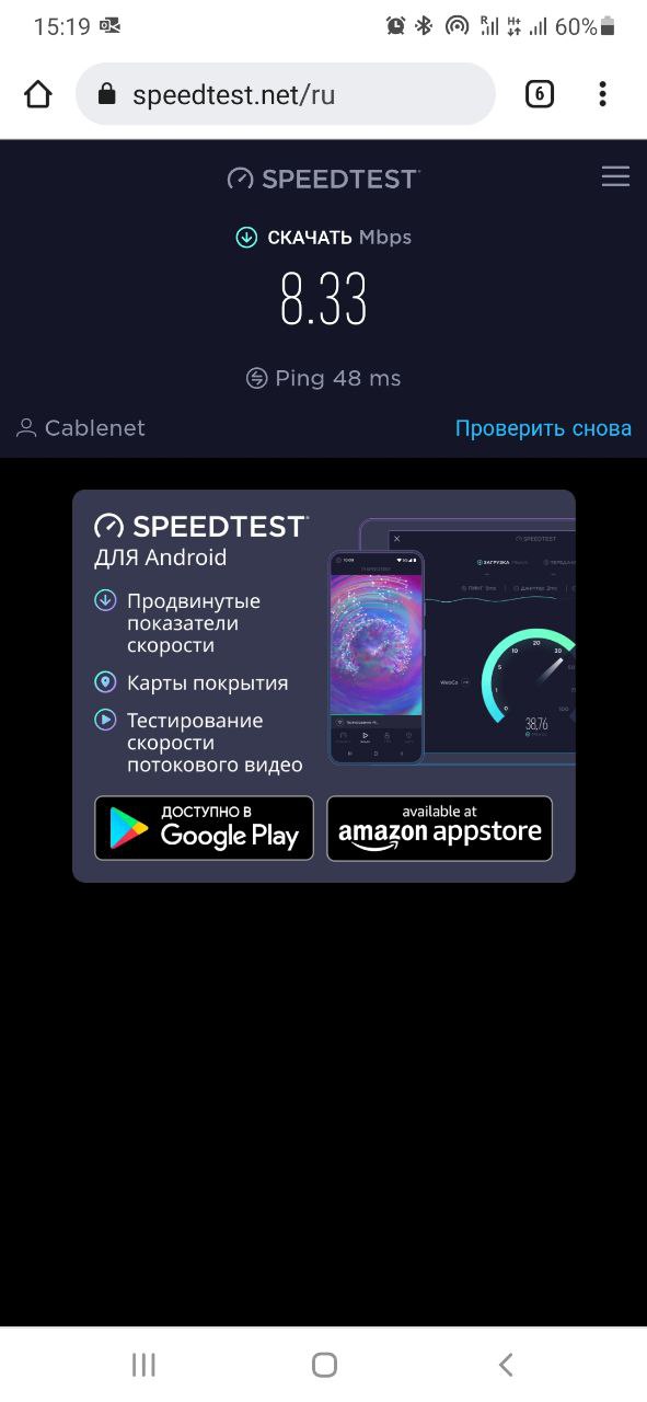 По скорости, спидтест показывает 4,4 мб/сек, подумала, что уже порезали ☹ или это нормальная скорость для рабочего дня??