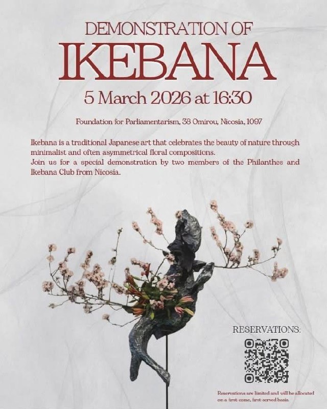На этом мероприятии два члена клуба Philanthes and Ikebana Club из Никосии продемонстрируют тонкий процесс создания этих потрясающих цветочных композиций.