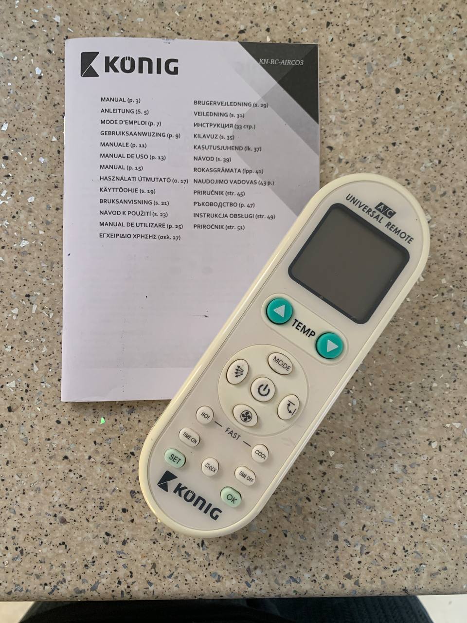 скачайте себе приложение на телефон что-нибудь по запросу air condition universal remote, их много, скачивайте штук 5 и посмотрите какое подойдет. Раза 3-4 была в такой ситуации и всегда находила какое-нибудь приложение, которое работало