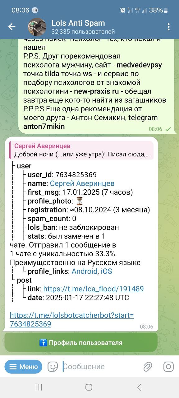 Сообщение от неизвестного человека с неизвестными рекомендациями?