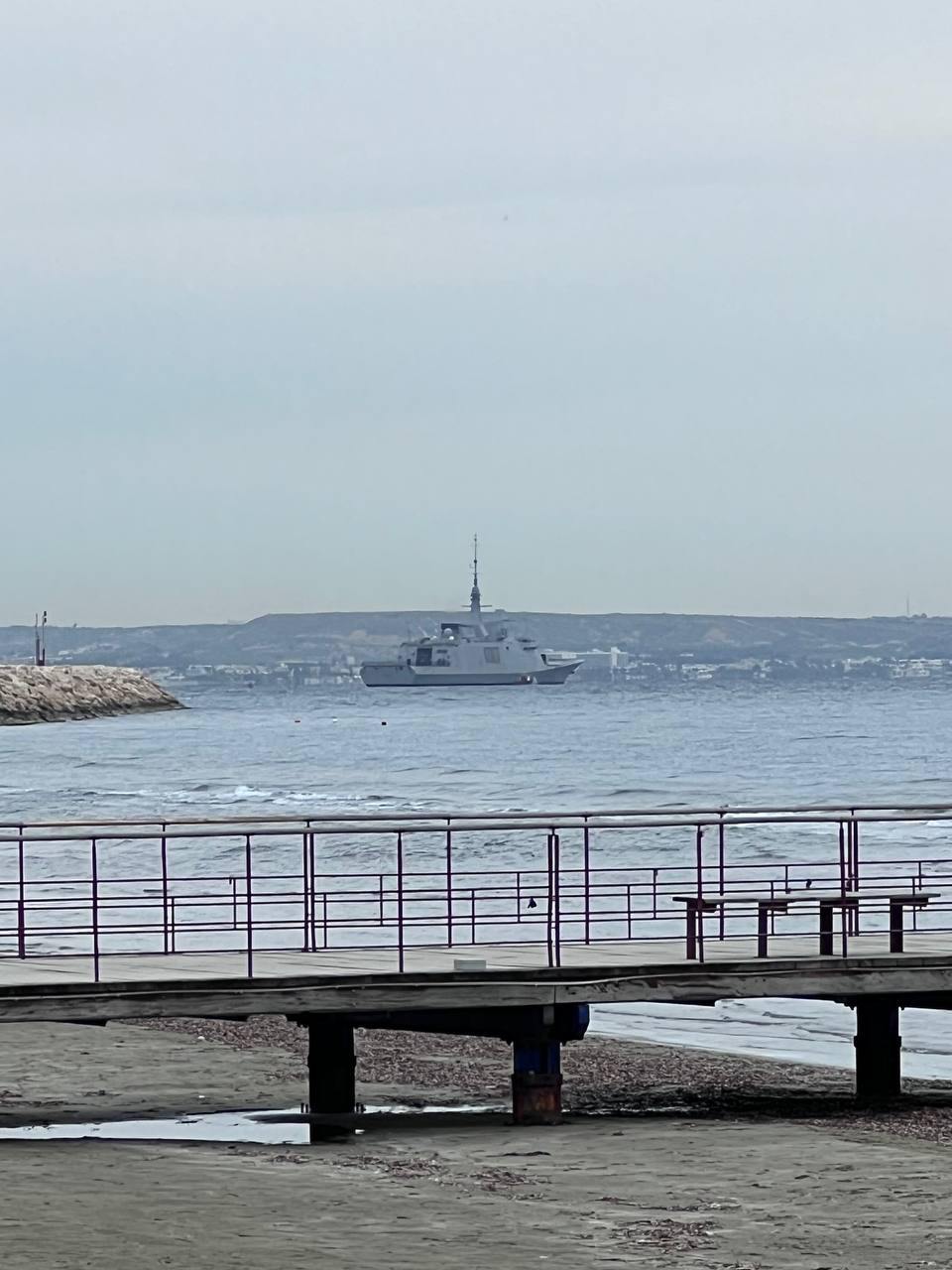 Вот такая шлюпка сегодня утром из порта вышла - https://archives.defense.gouv.fr/marine/equipements/batiments-de-combat/fregates/fregates-multimissions/bretagne-d-655.html
