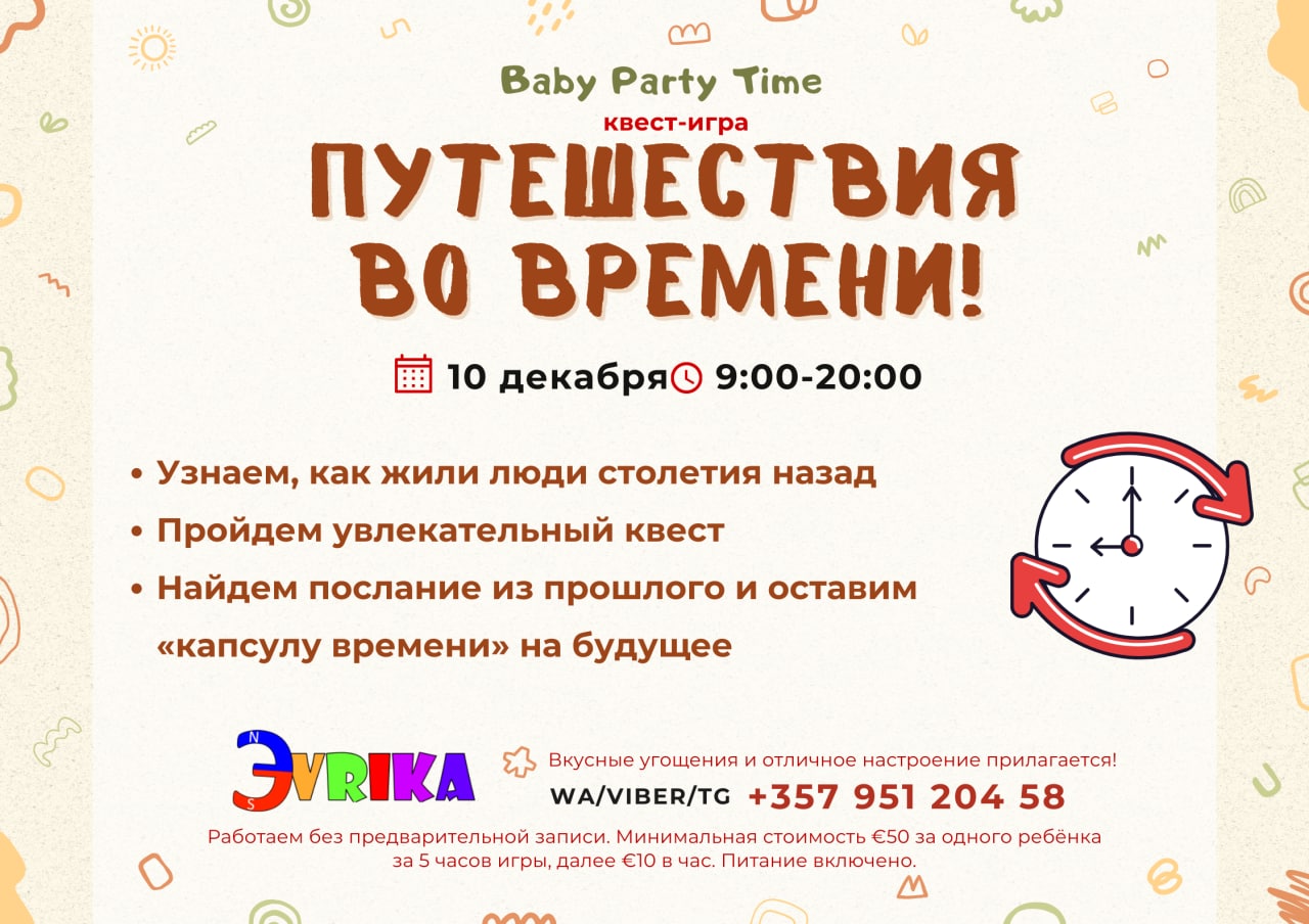 Мамы Лимасола! В эту субботу приглашаем ваших детей в увлекательное путешествие во времени! Ждем детей от 1,5 до 10 лет на Baby Party Time в эту субботу, 10 декабря, с 09.00- 20.00