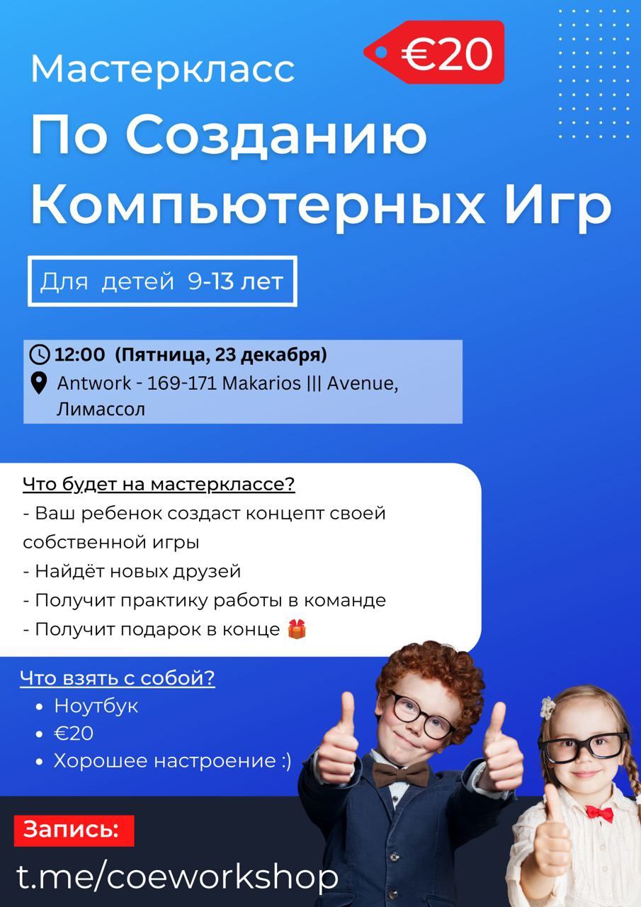 Приглашаем вас на МАСТЕР-КЛАСС ПО РАЗРАБОТКЕ КОМПЬЮТЕРНЫХ ИГР ДЛЯ ДЕТЕЙ (9-13 лет)