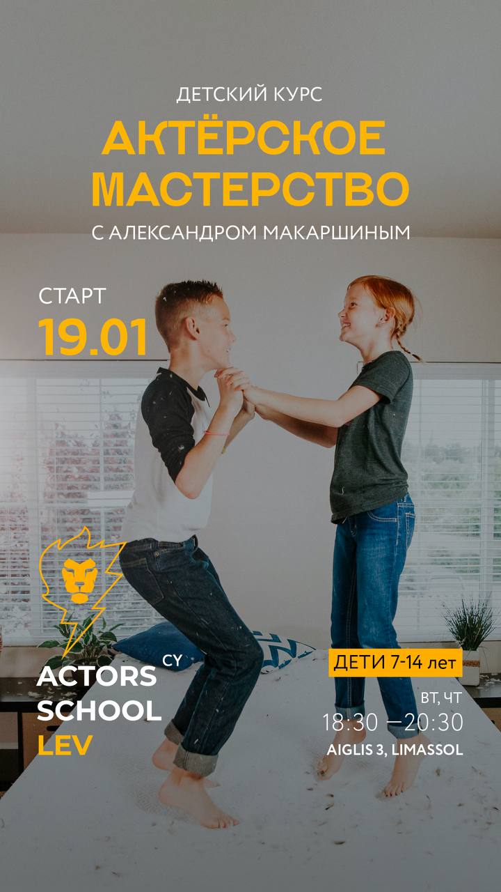 Ребята, завтра в Лимассоле стартует детский курс актёрского мастерства!🦁🔥🎭