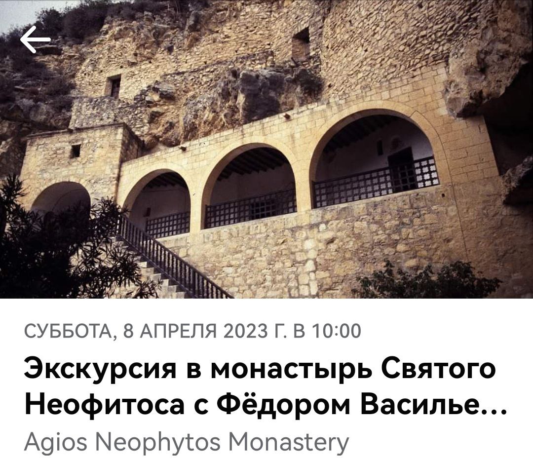 Географическое положение монастыря как предпосылка его возникновения. Святой Неофит - выдающийся просветитель 12-13 веков. Изучение его наследия в наши дни. Монастырский комплекс. Источник. Пещерный храм и его фрески. Католикон. Музей монастыря и страницы российской истории обители. Часовня святого Афанасия. Посещение - по желанию. Стоимость - 10 взрослые, дети бесплатно. На входе билет 2 евро.. Запись @olganamastenok