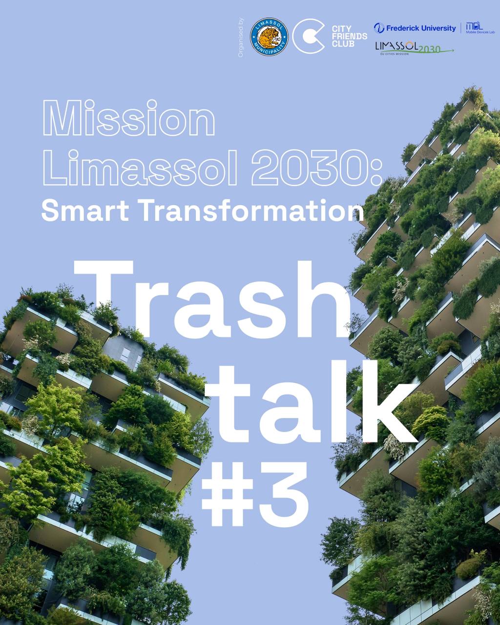 Trash Talk 3 ‘Mission Limassol 2030: Smart Transformation’ — это живая панельная дискуссия, которая объединит экспертов и жителей Лимассола для совместного исследования захватывающего потенциала технологий Smart City (умного города), идей и вызовов на пути к созданию высокотехнологичной и экологически устойчивой городской среды🌱