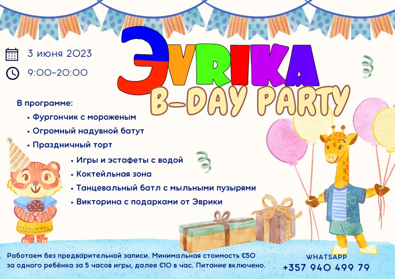 Мамы Лимассола! Детский сад Evrika приглашает детей от 1.5 до 10 лет на традиционный субботний Baby Party Time!