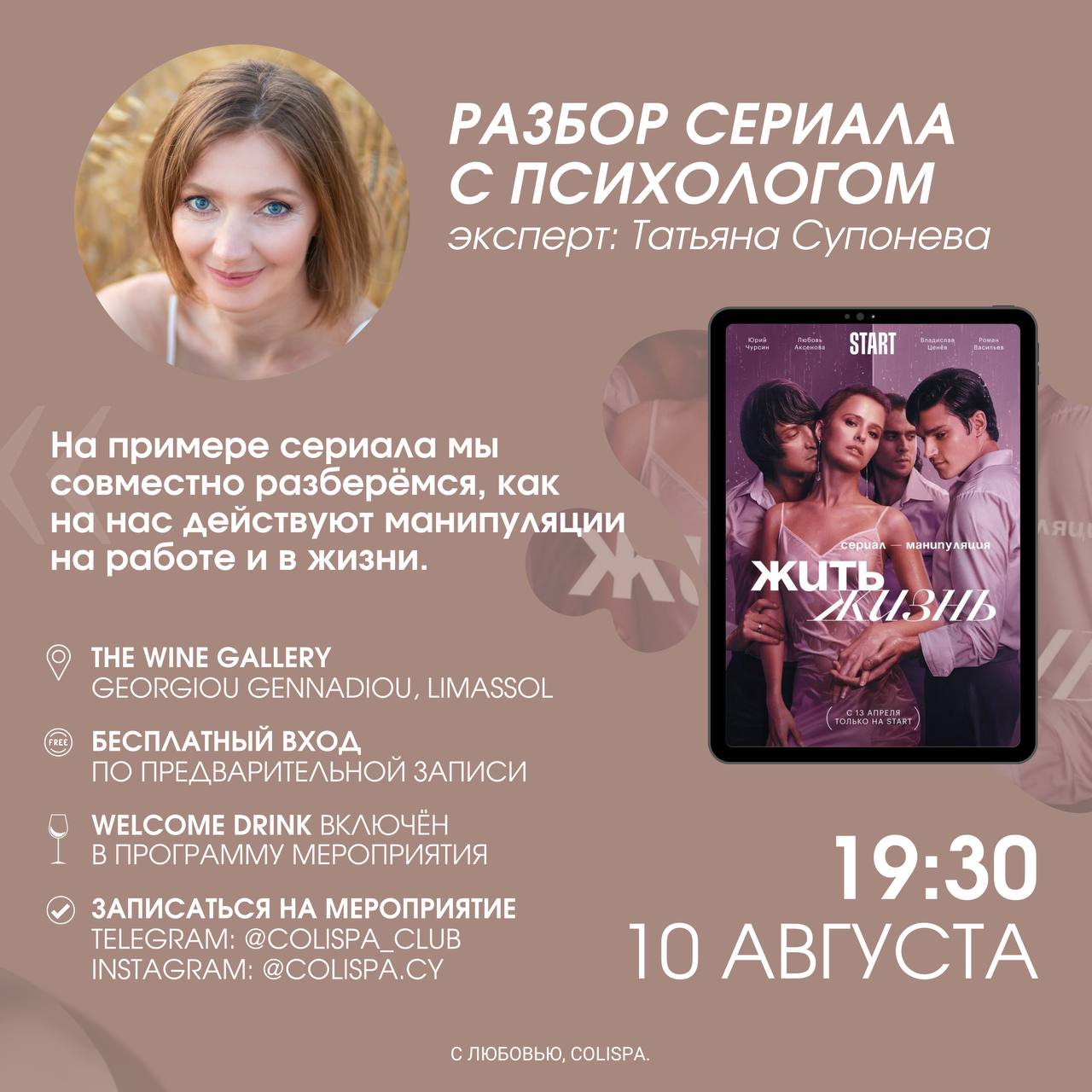Женское комьюнити colispa приглашает всех девушек на предстоящее мероприятие, посвященное разбору разных эмоциональных паттернов, например, манипуляции и абьюза.