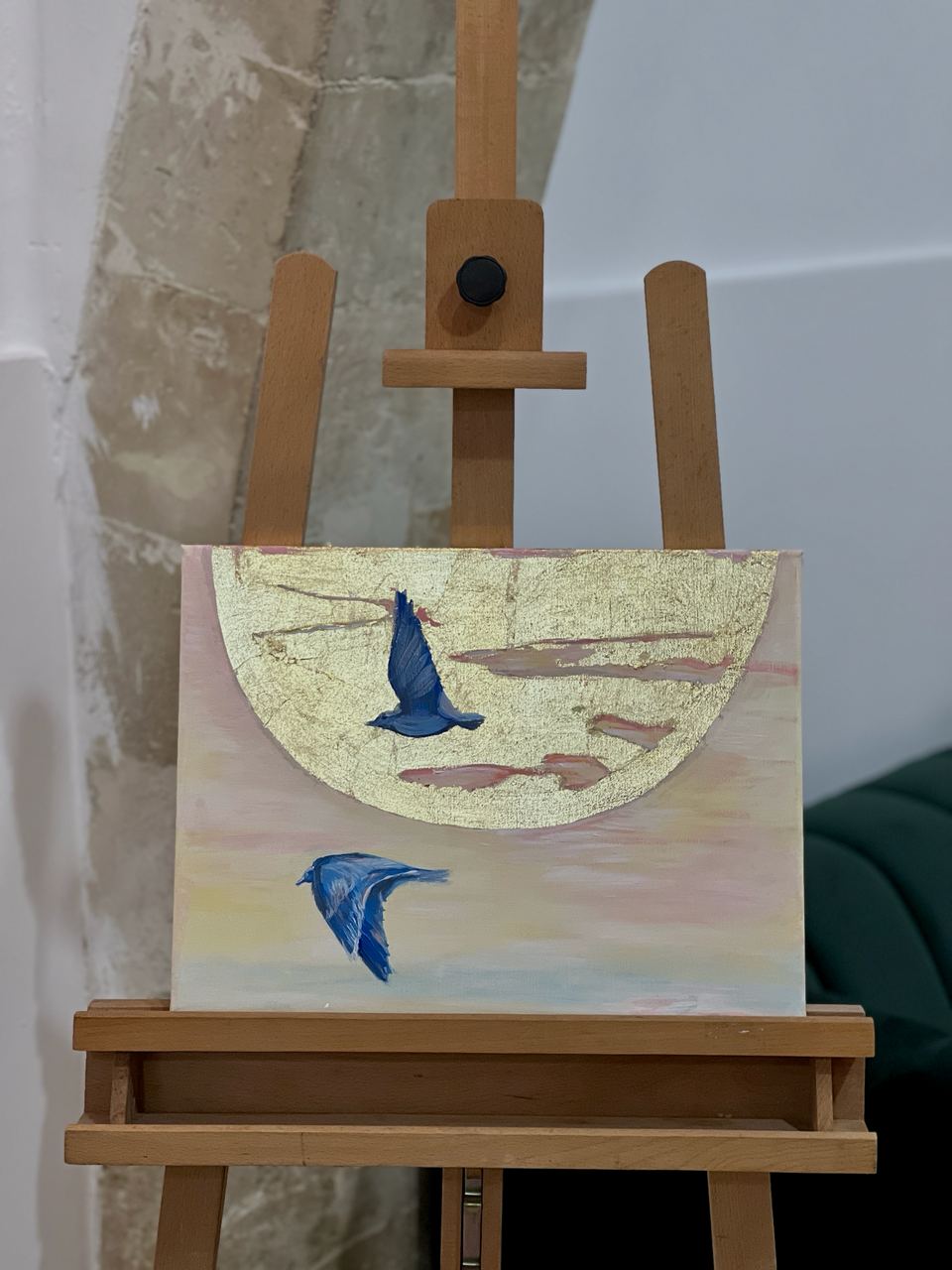 На мастер-классе каждая из вас создаст свою уникальную интерьерную картину, которая будет гордо висеть в вашем доме. Также научитесь работать с поталью (пота́ль — имитация сусального золота), акриловыми красками, текстурной пастой.