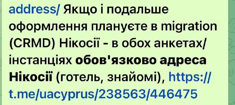 Адресу ви вказуєте письмово в обох анкетах в обох організаціях. https://t.me/uacyprus/238563/458838