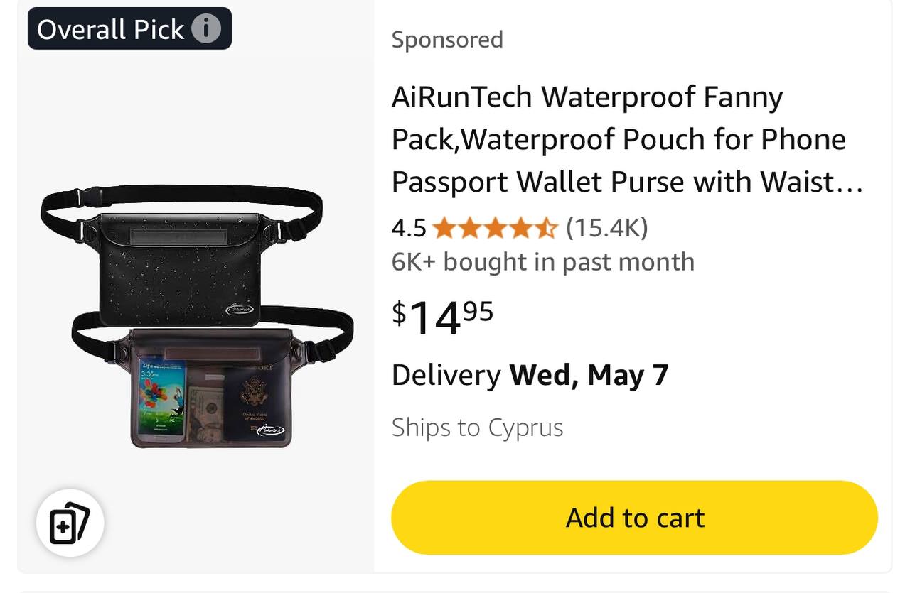 Как вариант еще можете использовать водонепроницаемые пакеты на зип-локе. Туда кладете телефон, карточку, нал, ключи и цепляете к руке.