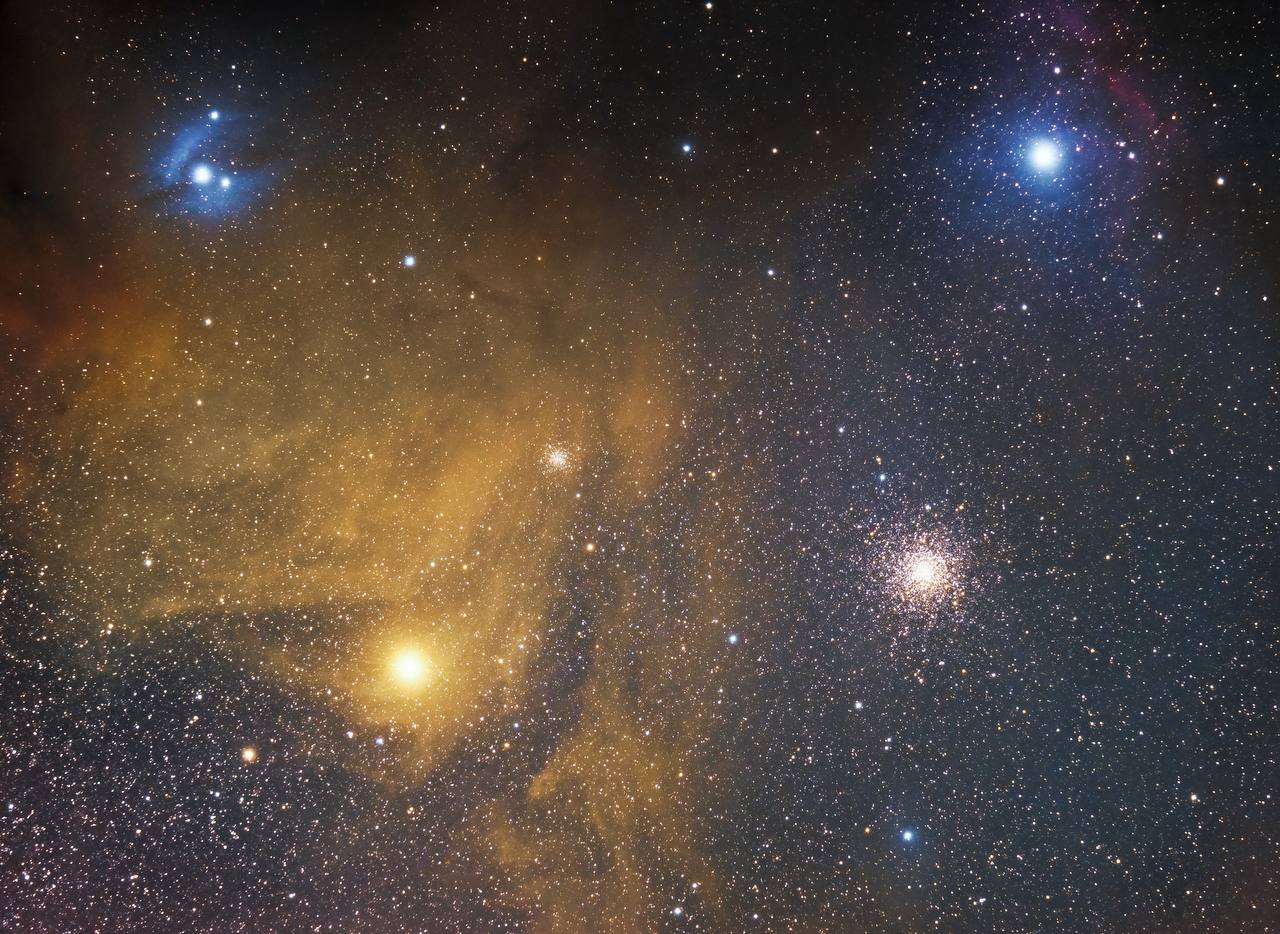 Кто что снимает? Давайте разбавим немного :) тау и сигма Скорпиона, NGC 6121 и 6144 и желтенький Антарес