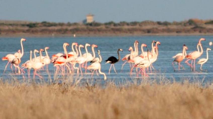 У кого есть дальнобойная оптика, может попробовать поймать удачу и сделать фото редчайшего черного фламинго.