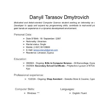 If you have any job opportunities or projects, please contact me in Direct Messages or the email provided in the cv.