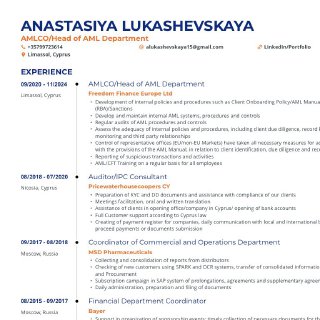 Looking for new opportunities in Cyprus or remotely, where I can bring strong expertise in AML/Compliance and support regulatory excellence.