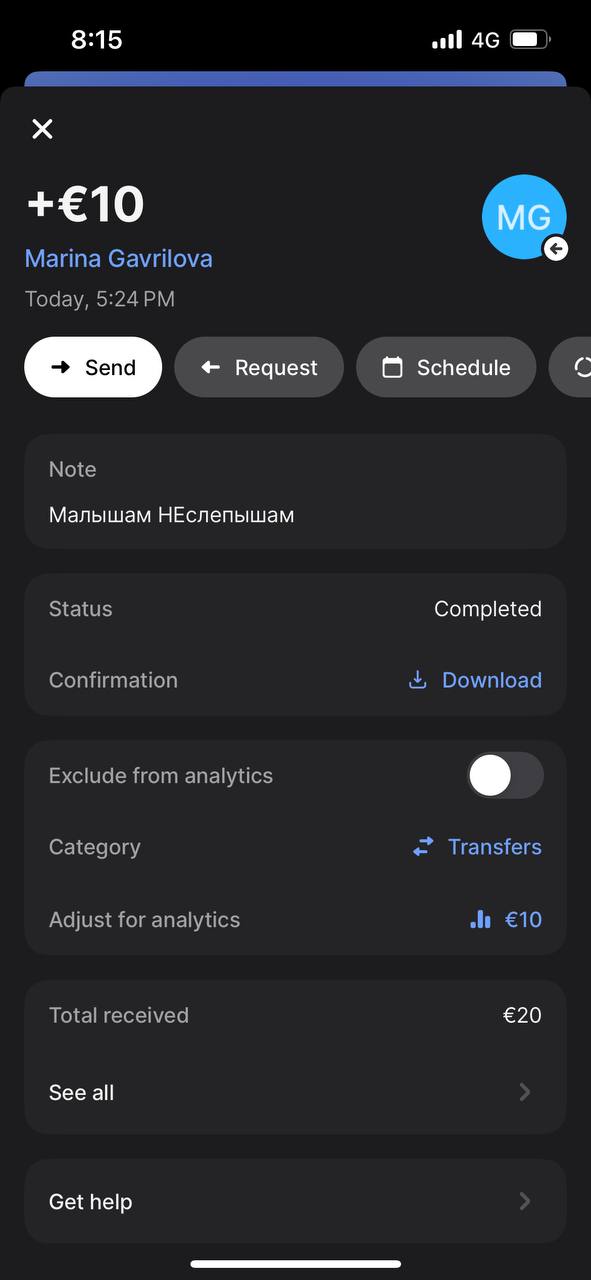 Друзья, пришло еще 50 евро от замечательного человека 😍 Спасибо большое!!