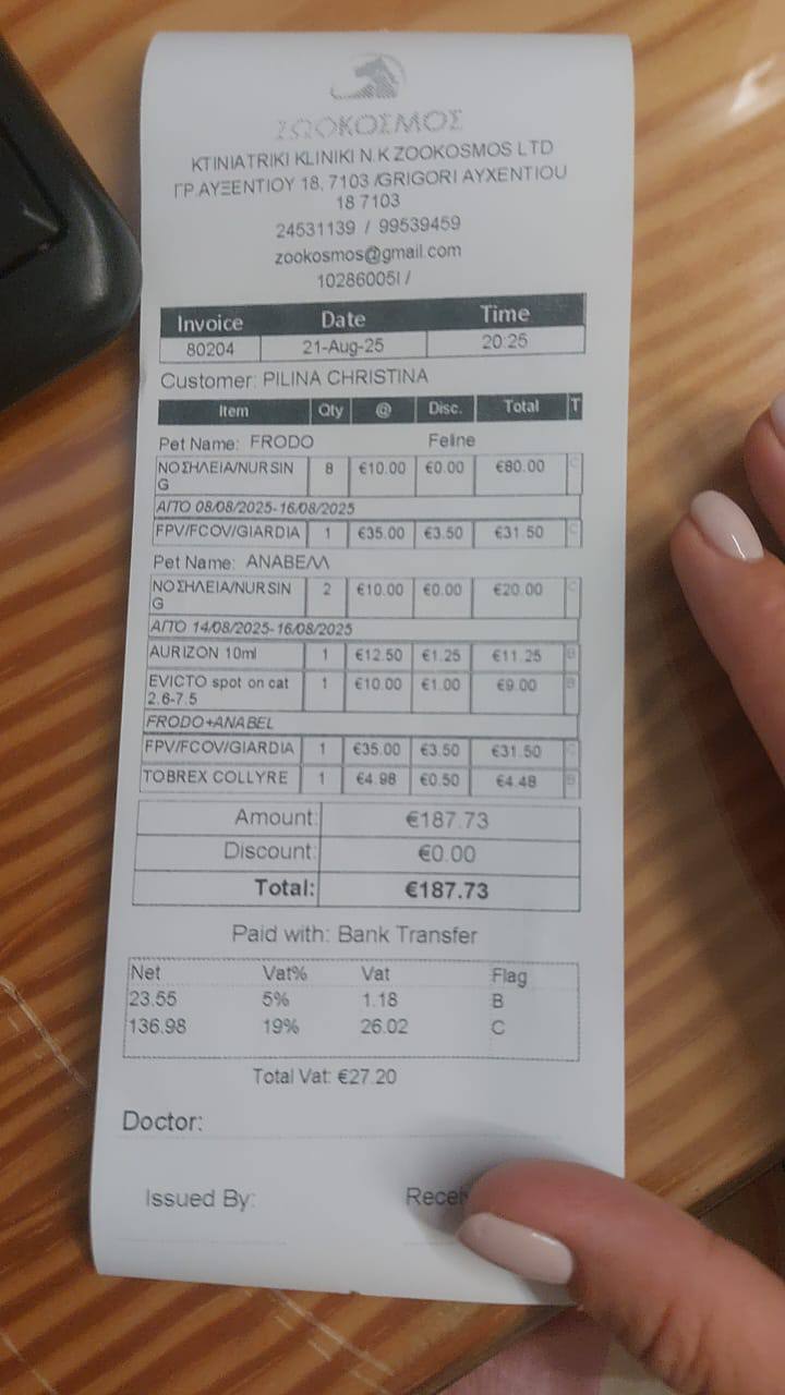 Изменения в чеке (в сравнении с estimated costs) - туда добавили влажный корм, пересчитали сумму за два отдельных бокса для котеек, добавили стоимость лекарства