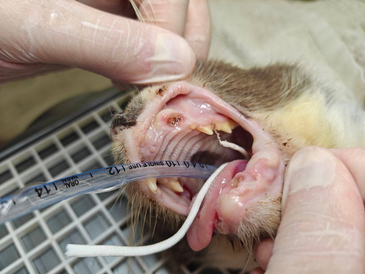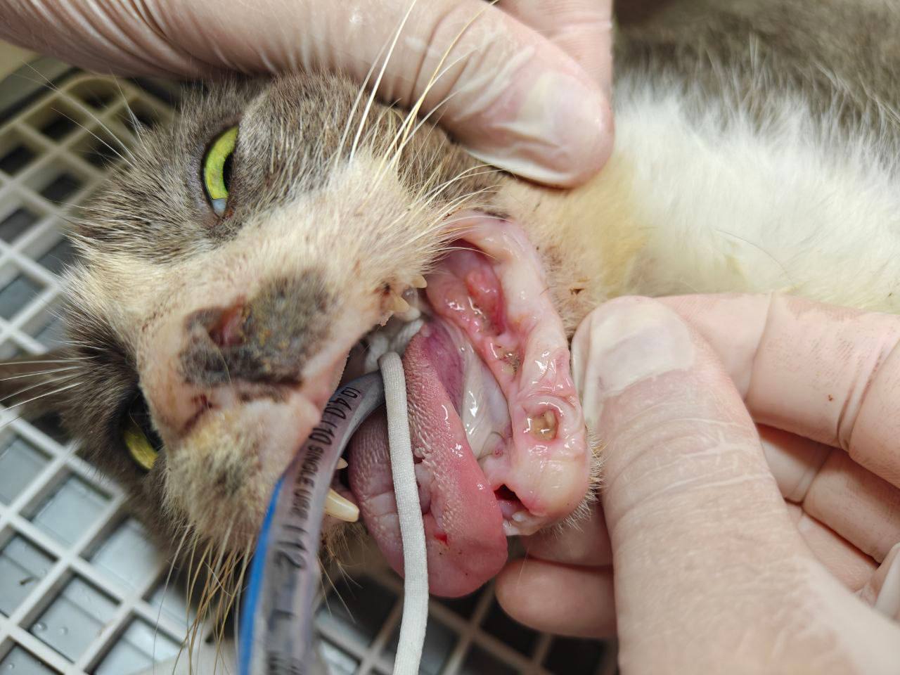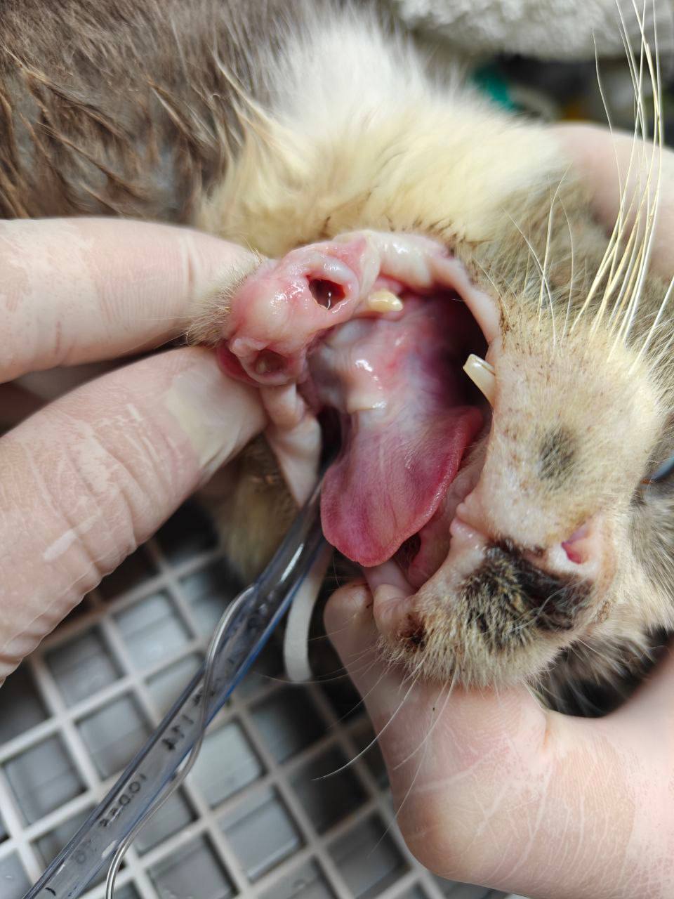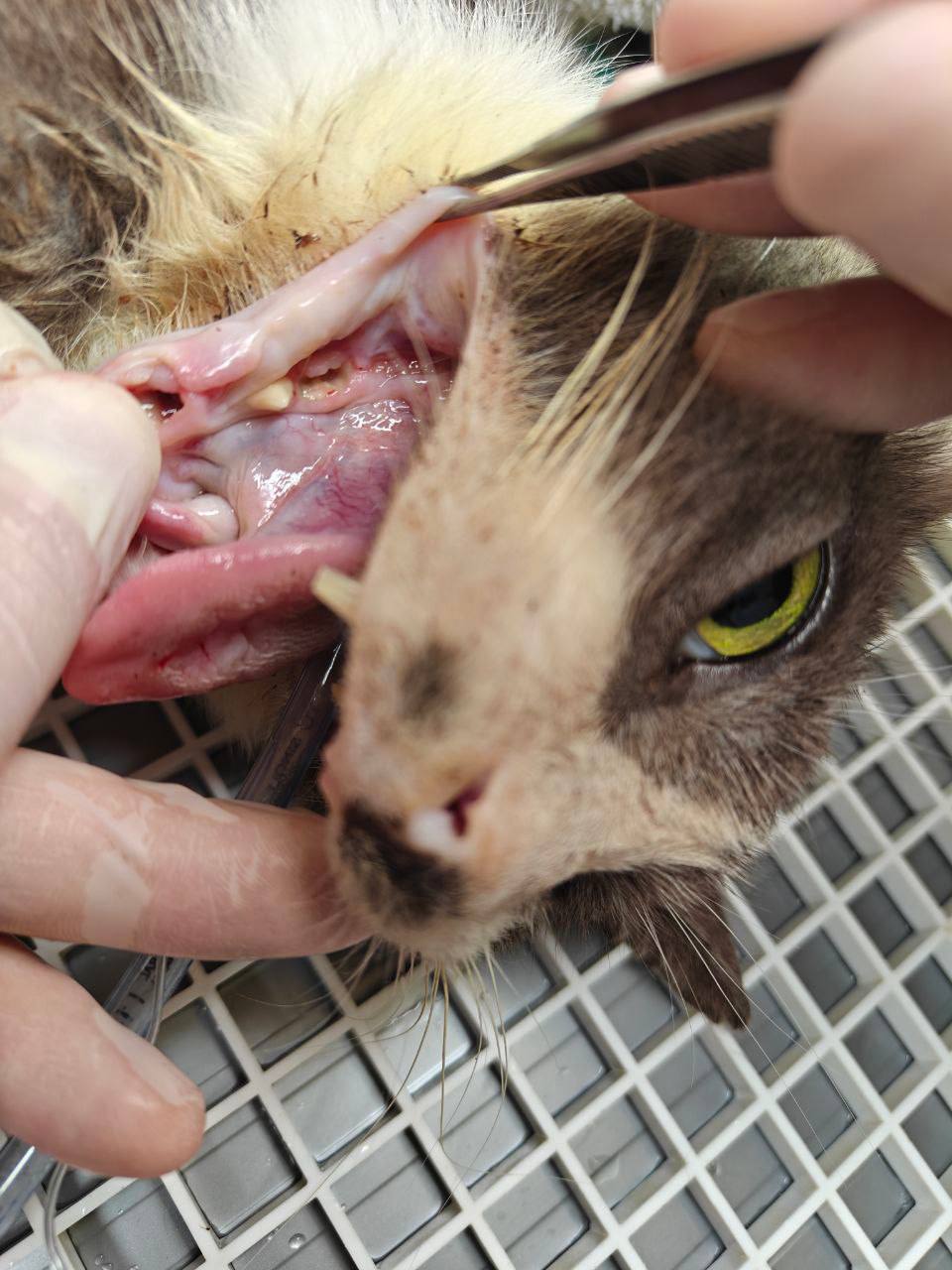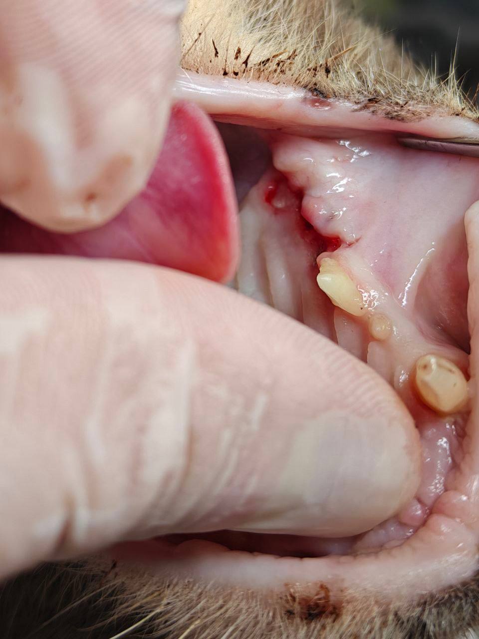 у кота оставлено 10 корней (6 от двукоренных и 4 от однокоренных), незашитые дырки от удаленных зубов полные гнойной каши, 3 зуба под обязательное удаление и еще 3 «можно подождать», но лучше за раз уж удалить ибо вряд ли кто-то будет следить и ухаживать за ротовой полостью уличного кота. огромная десневая рана, которую нужно будет вычищать, подпиливать и закрывать дефект. запущенный кальцивироз. лишай и в целом все еще истощенное состояние.