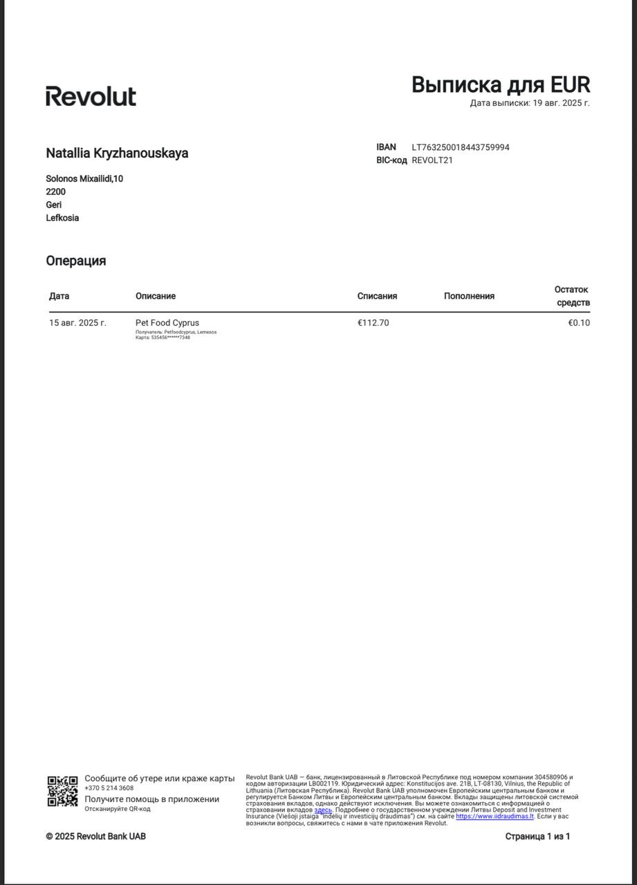 Еще 112 евро - я заказала молоко Роял Канин и Паштет этого же бренда)
