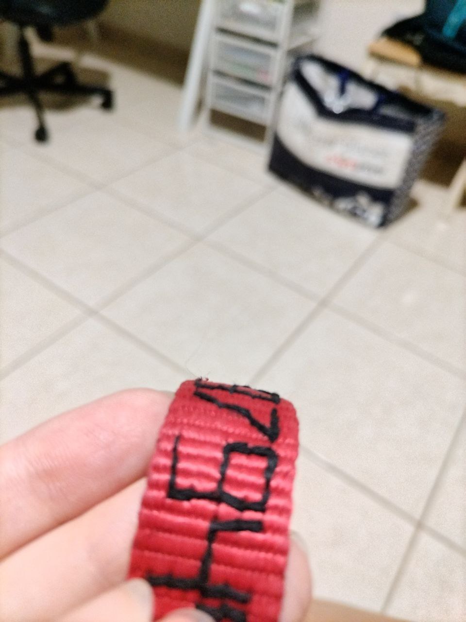 Это вышивка, не маркер. (на скорую руку потому и кривая). После того как мы потеряли 3 адресника в море и 2 в траве/лесу - пришлось искать альтернативу