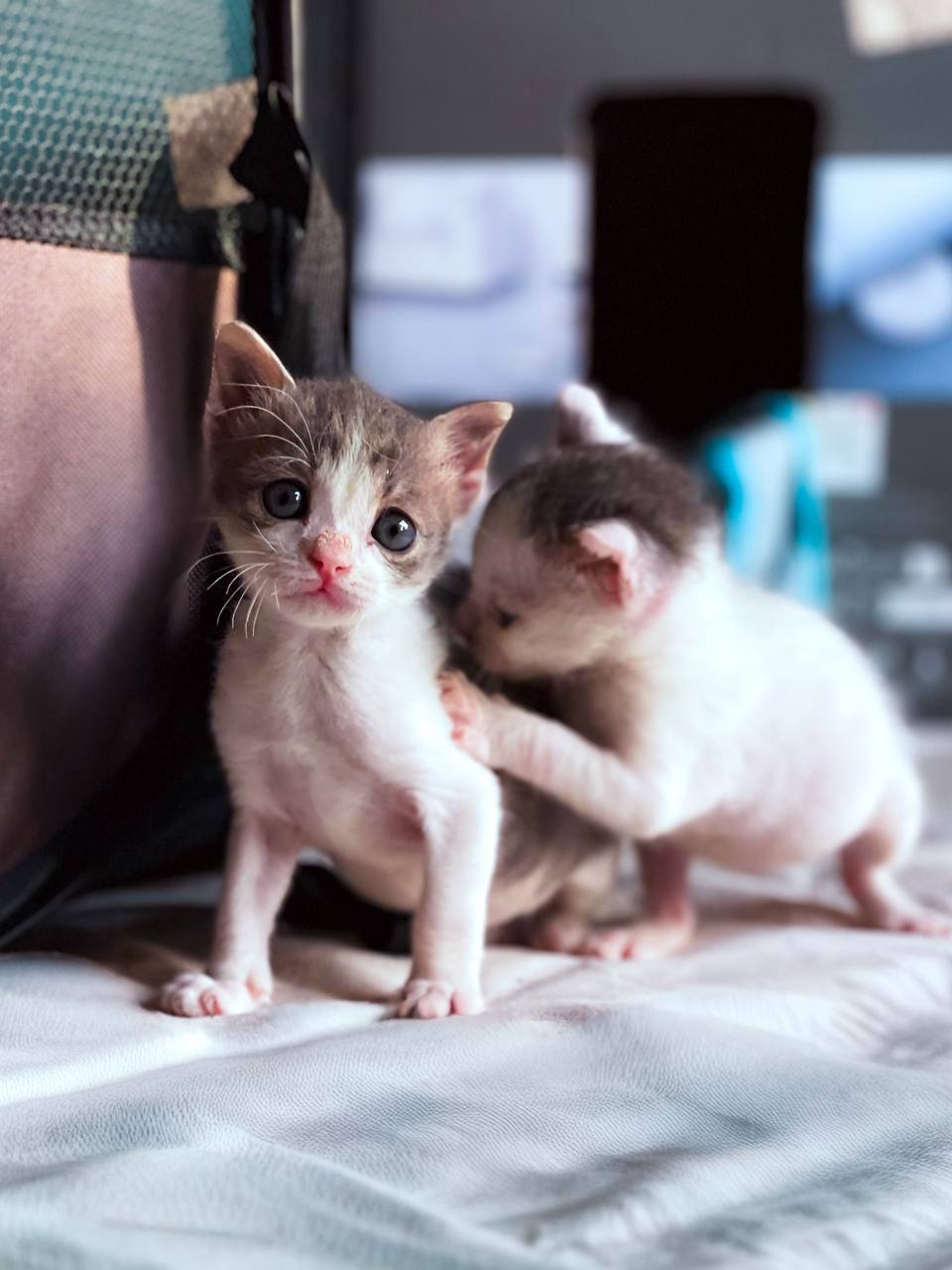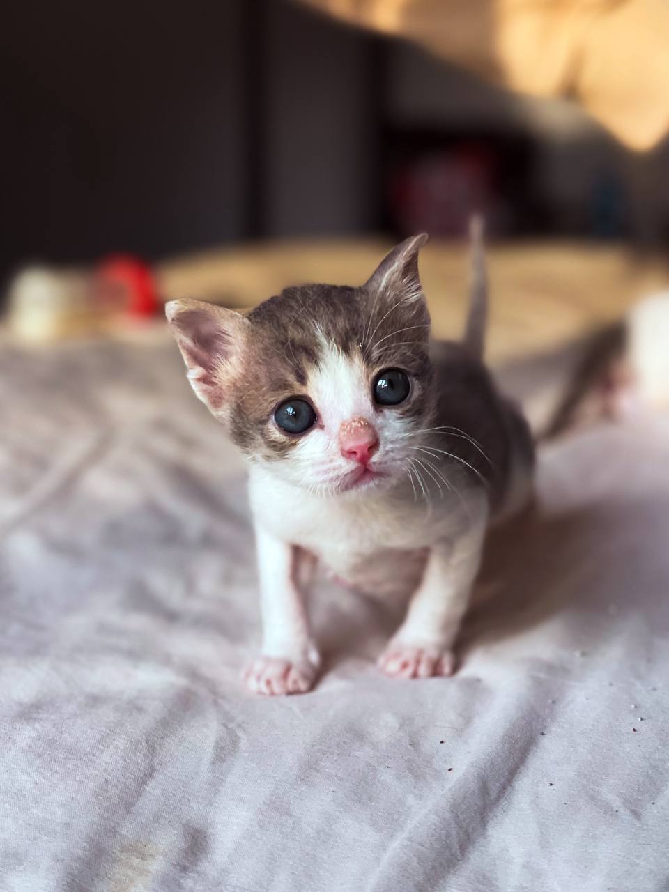 Им сейчас 6 недель - по размеру отстают от ровесников, но не по развитию. Кушают сами паштет, пока допаиваем смесью из бутылочки дважды в день, научились ходить в лоток и умываться🥰