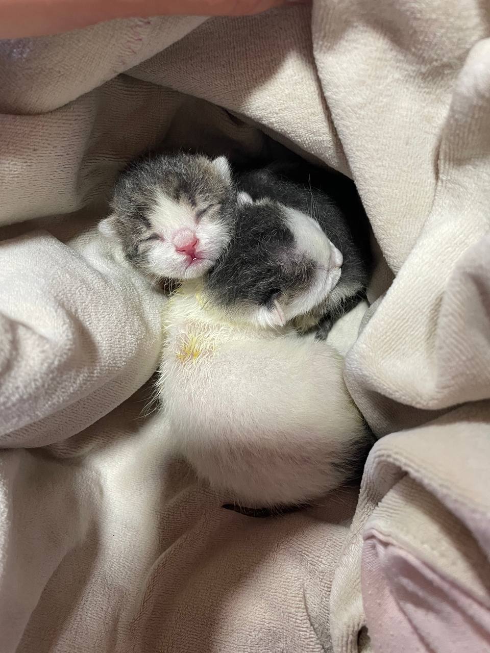 UPD: я забрала котят и отвезла в клинику. Пока шансы на жизнь 50/50 - но если выживут, мне потребуется сила чата. Поделюсь деталями позднее, пока наша доктор забрала их на ночь к себе - кормит, греет и массирует.