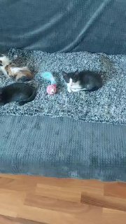 Самые маленькие, которых, как говорит Биляна, ей подкидывали. На вид им 2-3 недели, они худенькие, но едят паштет. От молочка наверно тоже не откажутся, но питаться самостоятельно тоже могут.