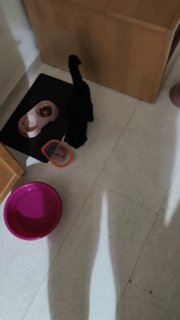 Она в том дворике сидела на лавочке, через забор, я в домик пересадила, чтобы кормить, больше некуда увы