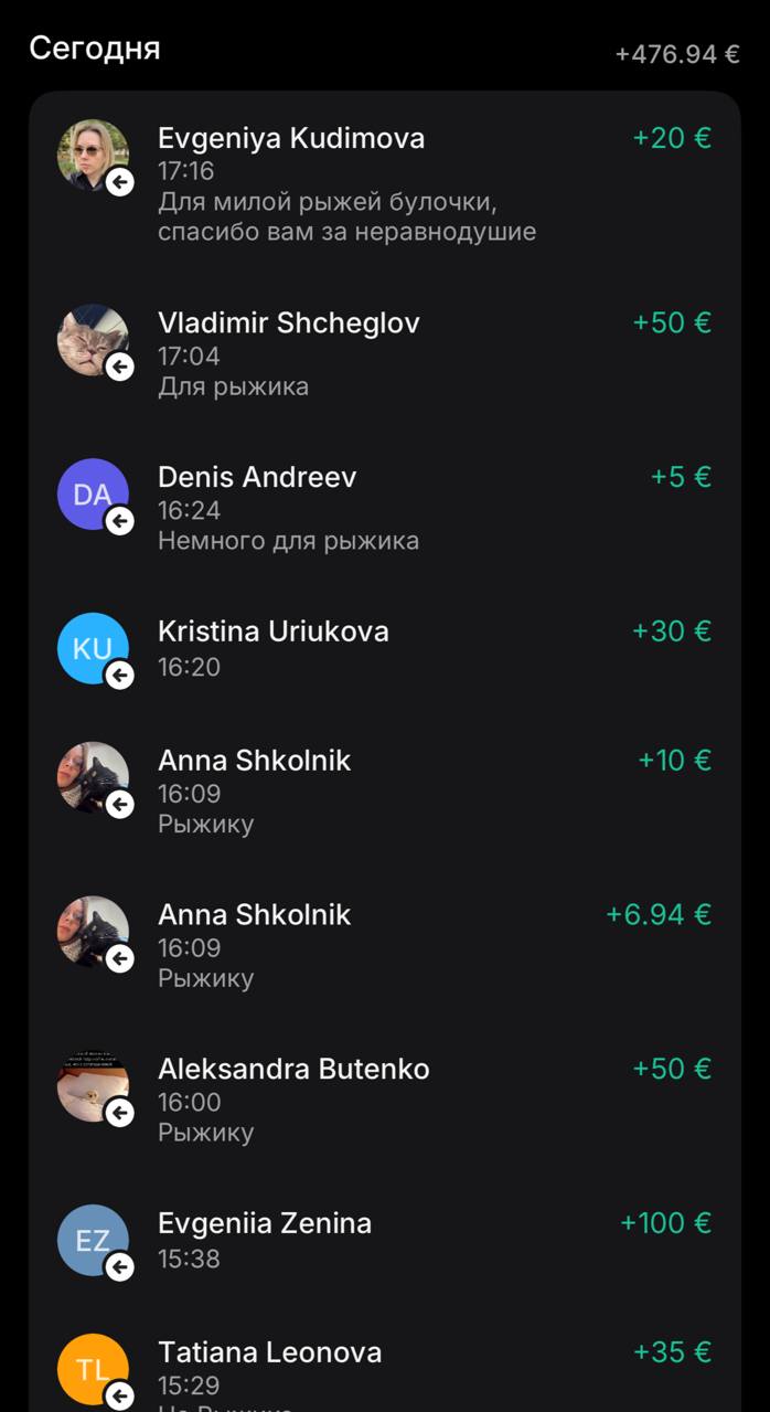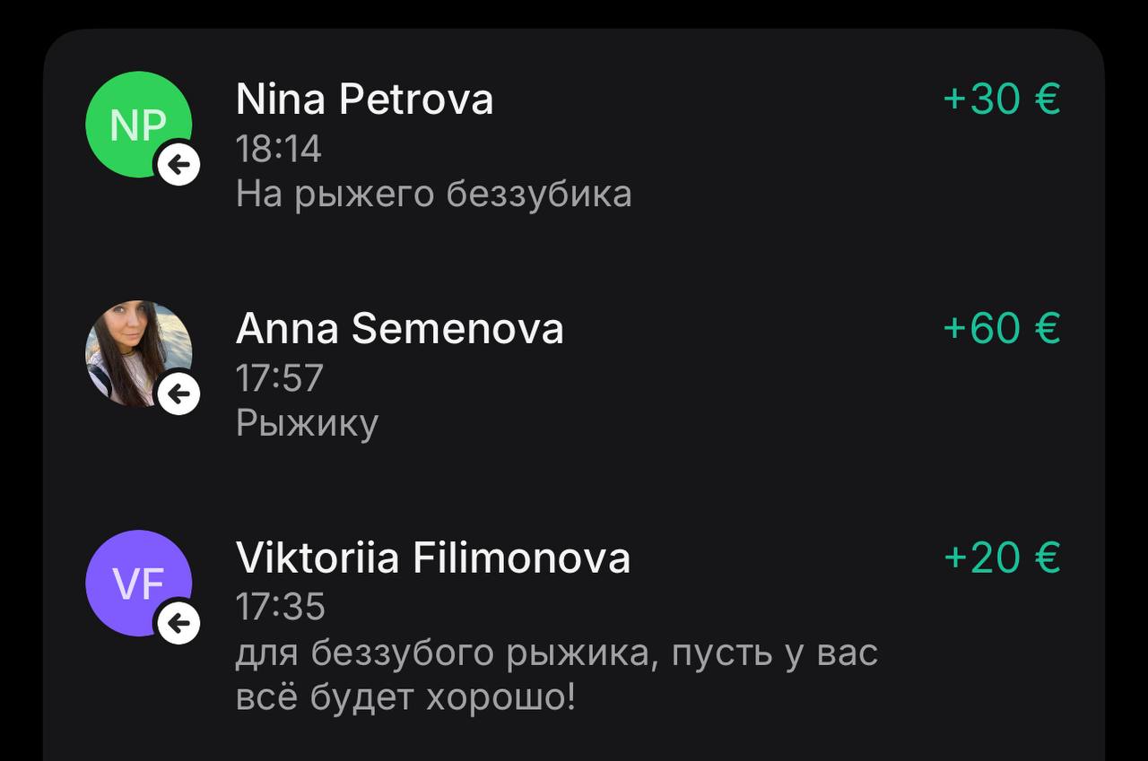 спасибо каждому, кто поддержал Рыжика, перевёл деньги, написал в личку тёплые слова — мне это очень дорого и важно 🥹❤