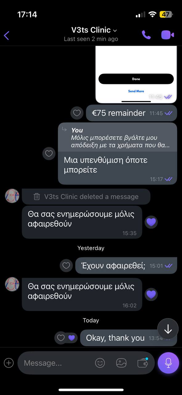 Here is the clinic's number for anyone who wants to ask about the bill and verify that it’s almost entirely paid: 24253373. The clinic is V3ts in Larnaka. Vilena and Sasha helped with transportation, and my acquaintances Marina, Alex, and Eleonora helped trap the injured cat and her kittens. All images and videos are included in these posts: