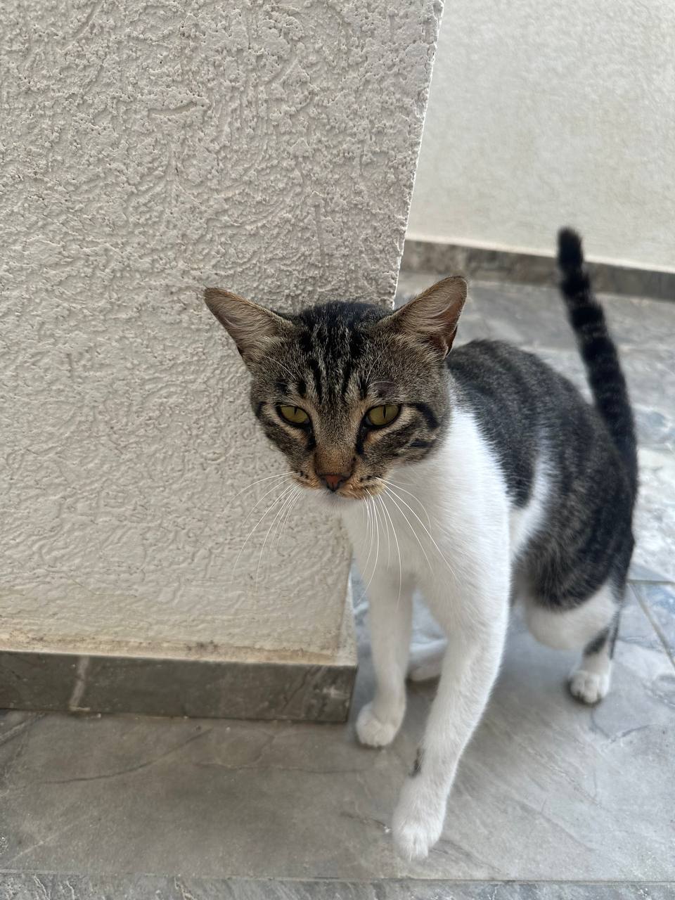 Привет, к нам в Гермасойсе туристерии около месяца назад прибился такой котик. Он заходит в дома, если дверь не закрыта, громко мяукает и гладится как домашний. Чистый и был здоров, но сейчас начал чихать и появились сопли.