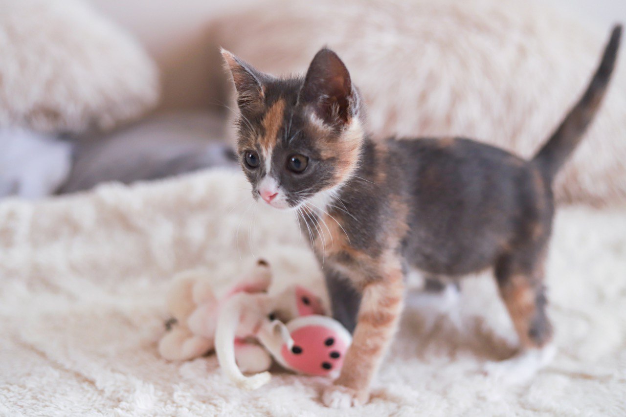 Здорова, обработана от всех паразитов, ест сухой корм, но очень уважает schesir kitten care tuna.