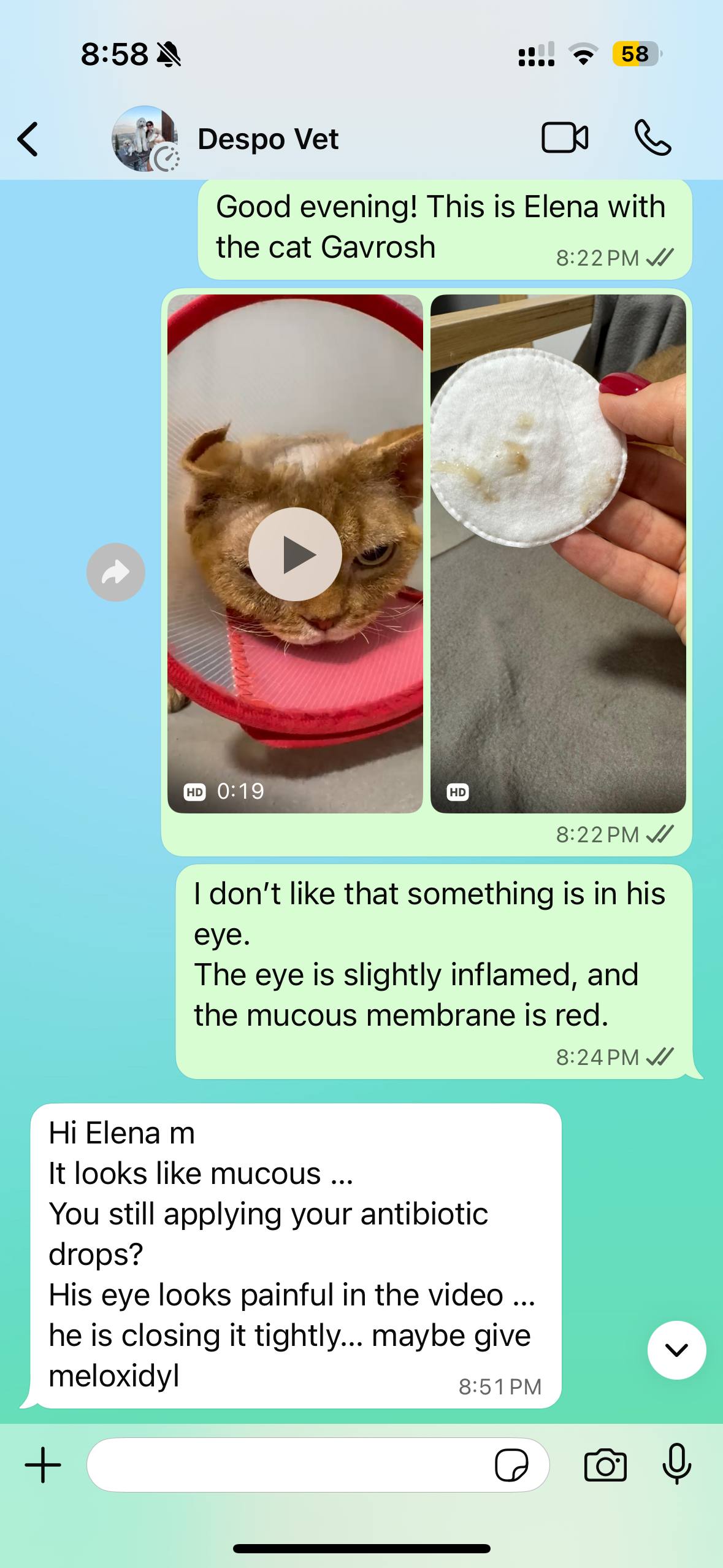 В итоге через друзей связалась с офтальмологом в РФ для онлайн консультации. Без огромной просьбы не один вет офтальмолог онлайн не возьмет консультировать.