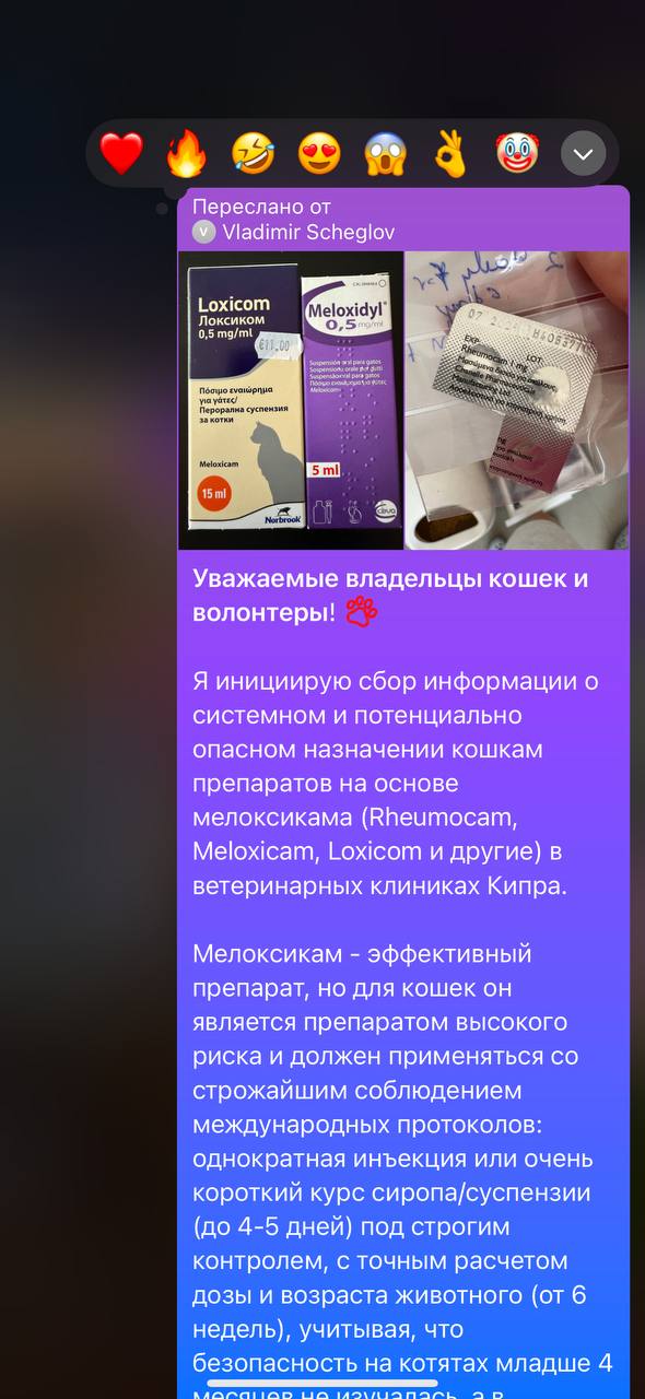 Всем привет! Я помню в чате писали, что Rheumocan опасен для кошек, я посмотрела на сайте этого препарата, есть доза 0.5 специально для кошек. Доктор Харис, после операции на глазу выписал ей это лекарство по 1/2 таблетки 1mg, и я как понимаю имеется ввиду та доза 0.5 для кошек. Скажите пожалуйста, стоит ли давать после операции кошке или это выписано просто так? От аналога её как-то раз тошнило, по моему meloxidyl. Заранее всем спасибо!