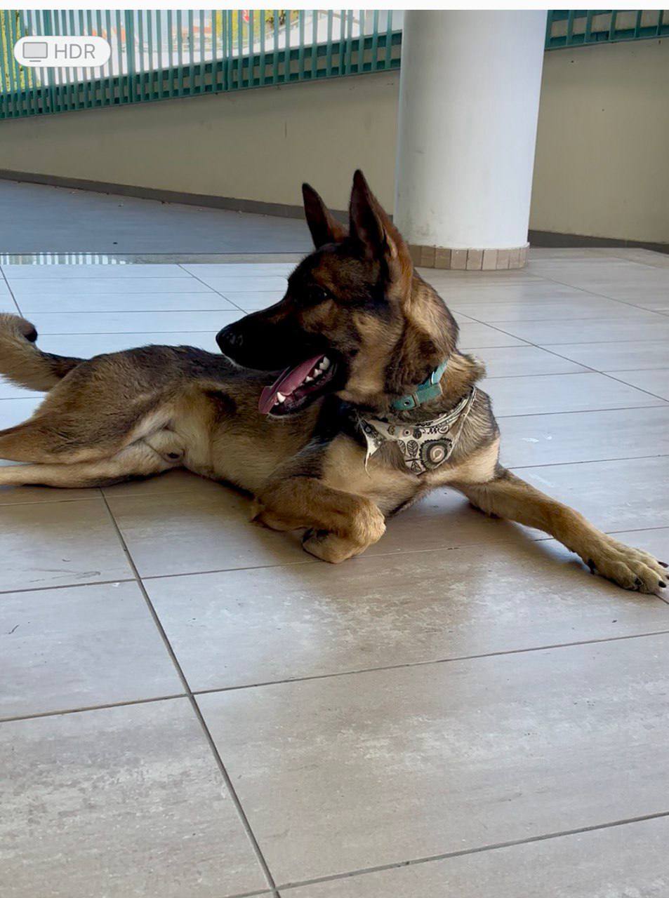 A dog has been found in the courtyard of ISOP school. Maybe someone recognizes it — the owners or their friends.