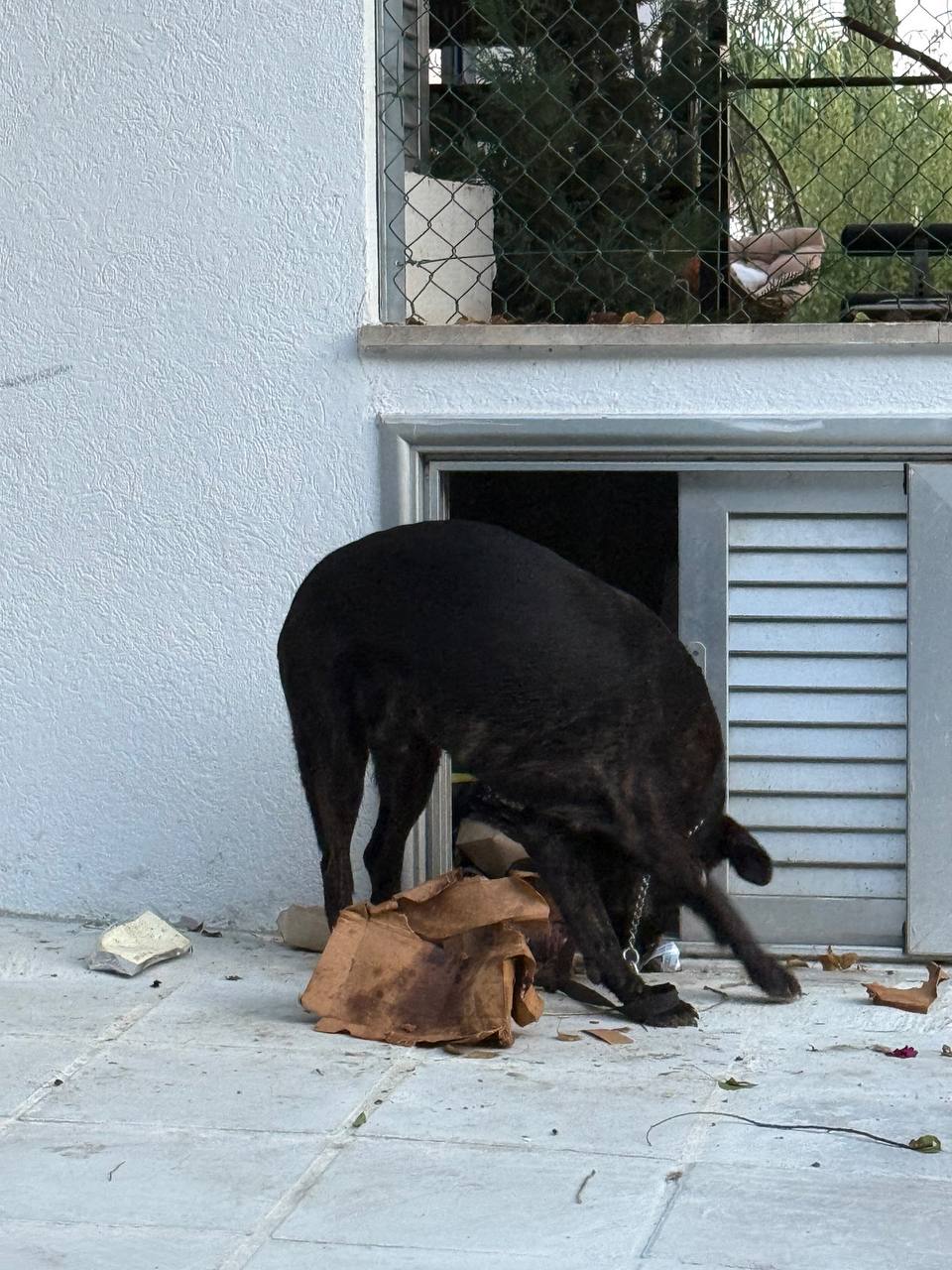 Вот так в клинике зафиксили - то есть она может его снять. Вариант сделать уже отверстие, если только разрезать пластырь и поуже сделать. Но тогда его сначала надо одеть на нее и на ней же зафиксировать. Я это вряд ли смогу сделать сама - она носится.