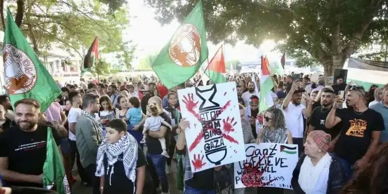 🔊 В Никосии 7 октября прошла пропалестинская акция с участием около 250 человек, осудивших израильские атаки на Газу и Ливан.